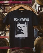 One-sided screen printed design featuring Cody's cat Bobo! Printed on a black Comfort Colors tee.